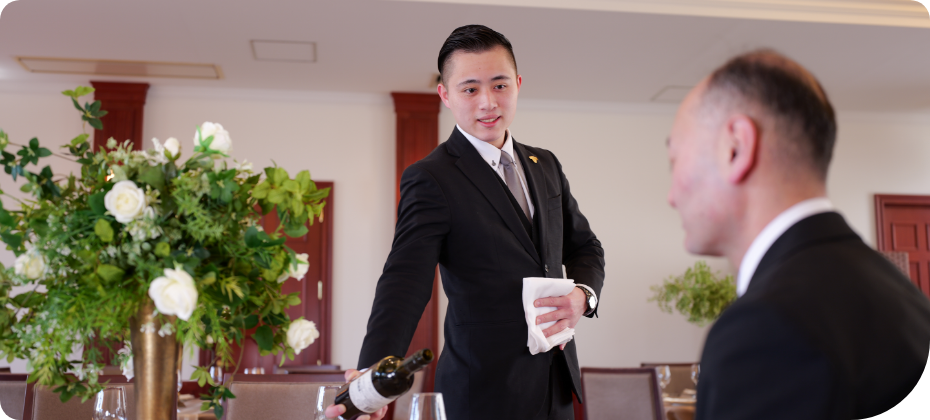 当社は飲食全般ではなく、ホテル・結婚式場・レストランなどのホールサービスに専門特化しています。